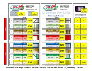 El Bingo Grande and 2 Wednesday and Thursday Program